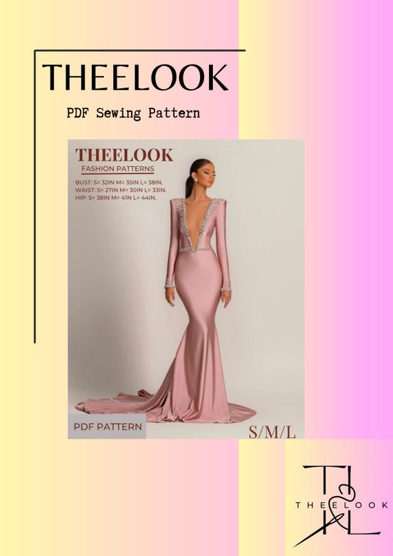 Plunging V Cut Mermaid Gown Pdf Sewing Pattern Etsy Australia