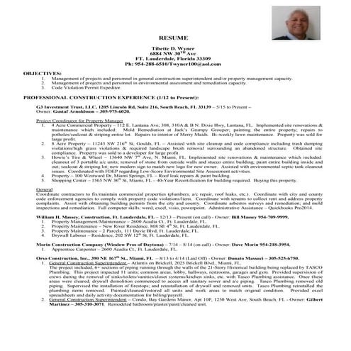 Resume Twyner2 16 16const Super Env Consultant Pdf